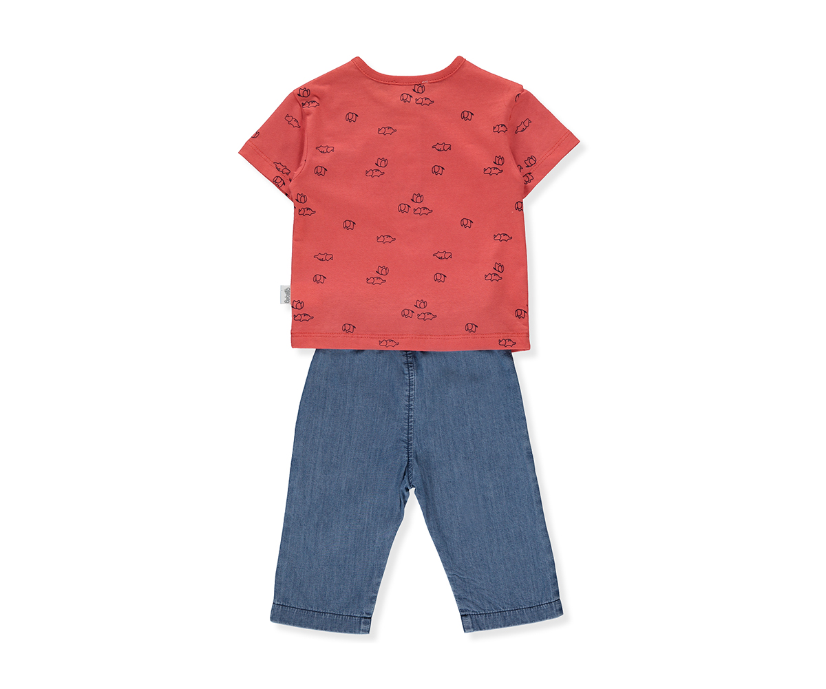 Bebetto - Комплект тениска с къс ръкав и дънки Let's be Friend K4290R, момче, червен, 9-12 м.