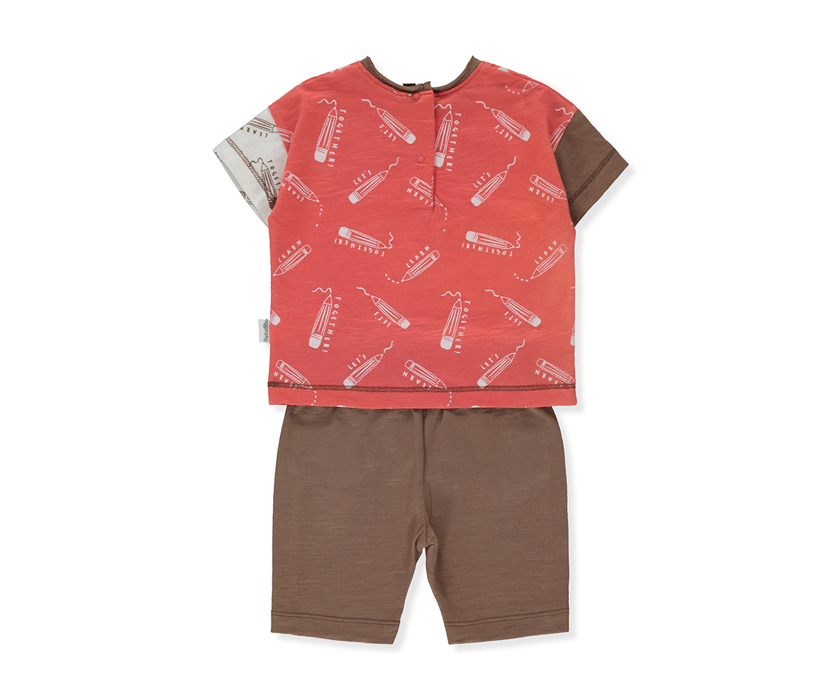 Bebetto - Комплект тениска с къс ръкав и бермуди Little Writer K4222R, момче, червен, 9-12 м.