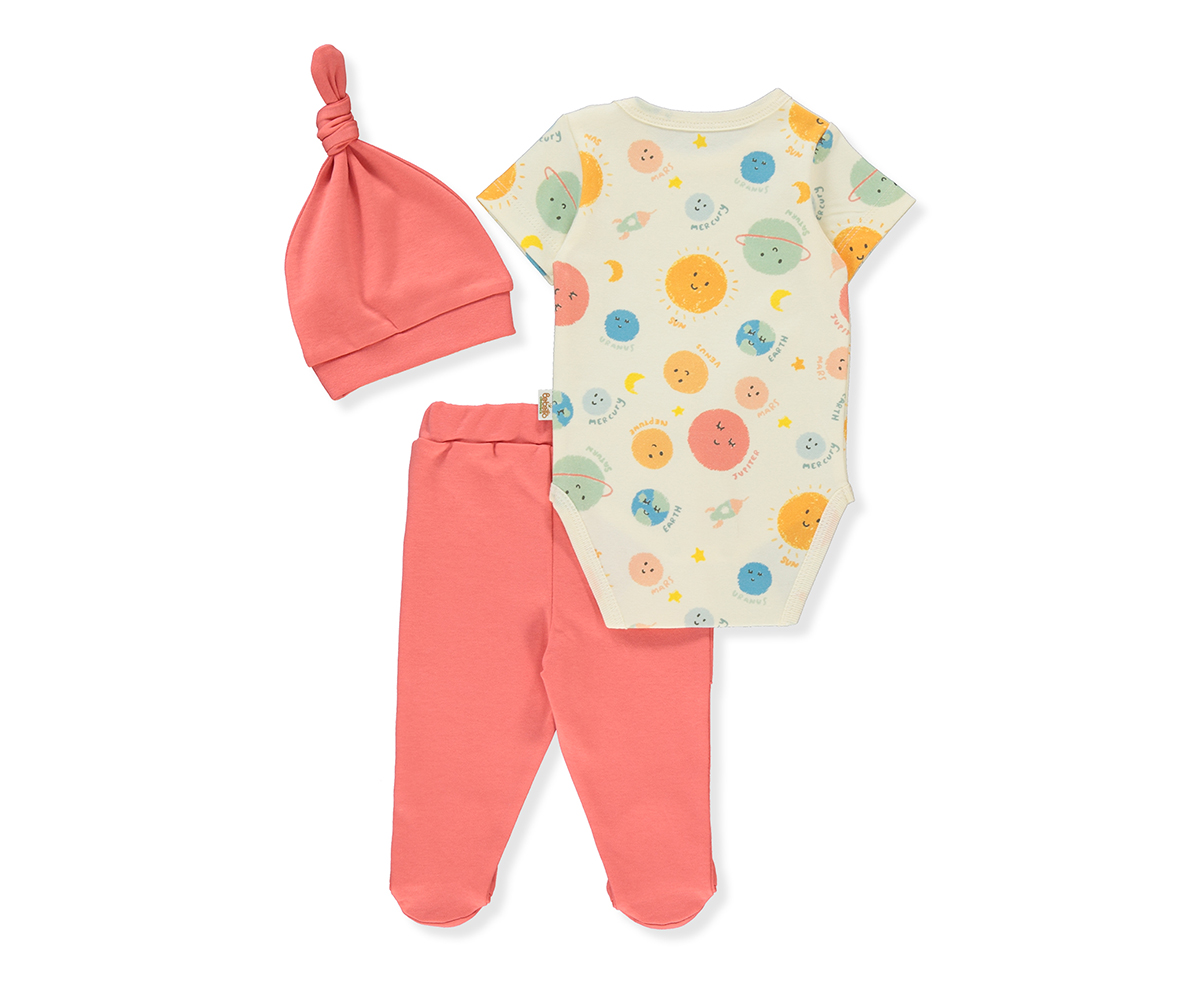 Bebetto - Комплект боди с къс ръкав, ританки и шапка Organic Cosmic Space T3593, унисекс, 6-9 м. - Ref. 8314848