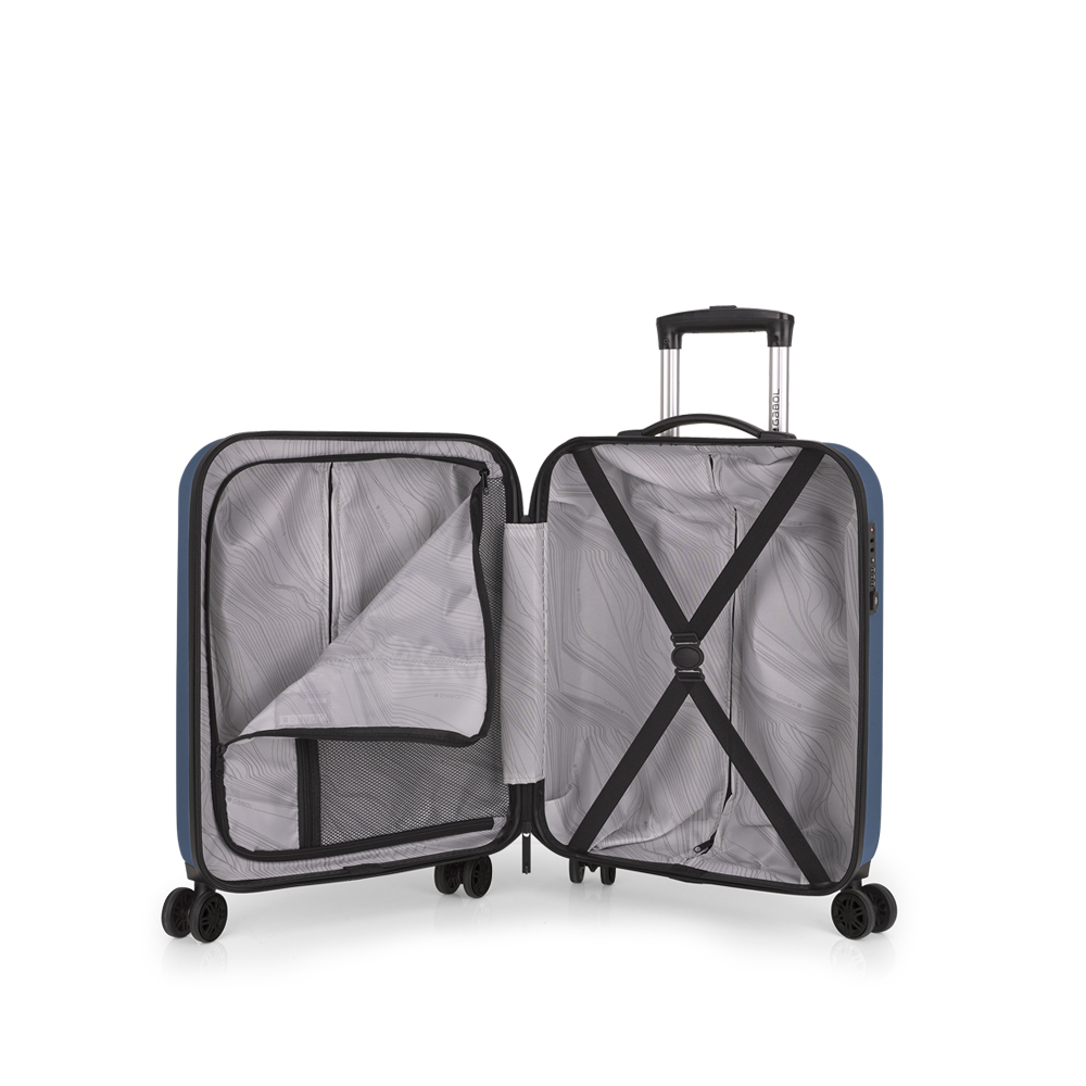 Създаден от здрав и устойчив материал ABS, този разширяващ се твърд куфар на Gabol съчетава сигурност и практичност. Перфектен за ръчен багаж, той предлага стабилност, лекота на движение и модерна визия. Благодарение на четирите двойни колела, TSA заключването и олекотения корпус, този модел е идеален избор за съвременния пътешественик.