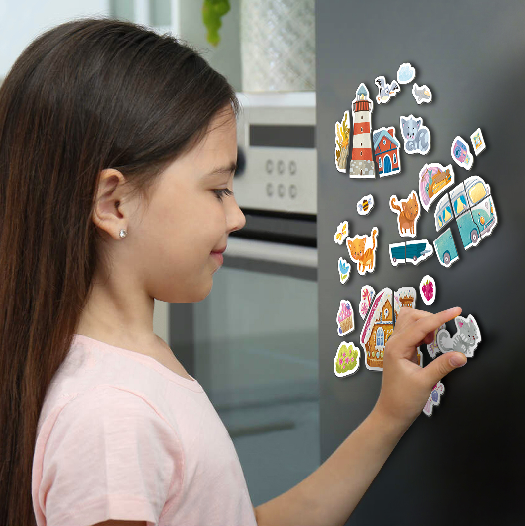 Открийте вълнуващ свят от образи и възможности с тази магнитна игра, създадена специално за най-малките. Подходяща за деца над 3 години, играта включва 20 магнитни елемента, от които се изграждат по-големи фигури или се използват самостоятелно за безброй творчески сценарии.