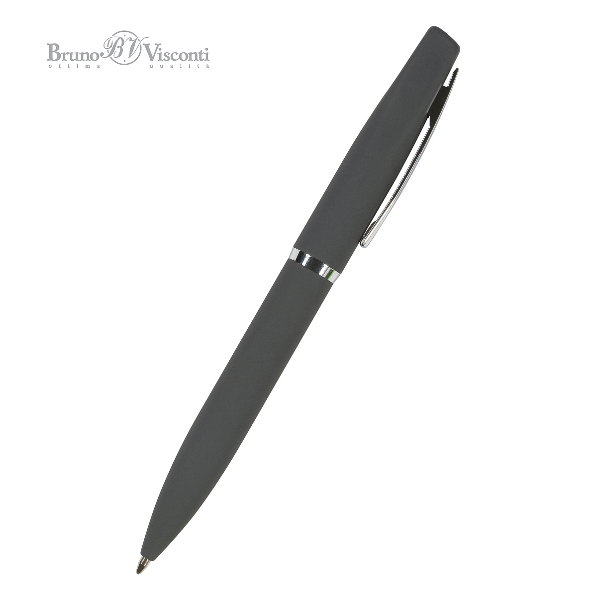 Стил и удобство събрани в едно – металната химикалка "Portofino" сива от Bruno Visconti предлага изискан дизайн и мека на допир SOFT TOUCH повърхност за комфорт при писане. Завъртането на върха осигурява лесна и надеждна употреба, а бързосъхнещото мастило гарантира чисти и ясни линии.