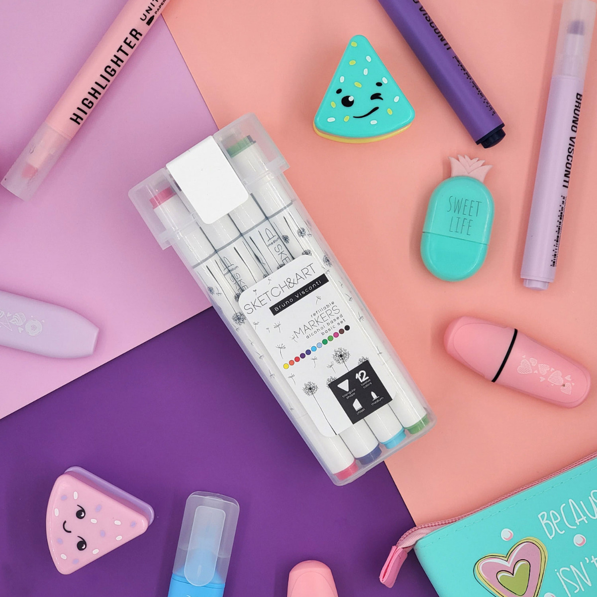 Перманентни двувърхи маркери Sketch&Art – 12 цвята | Bruno Visconti