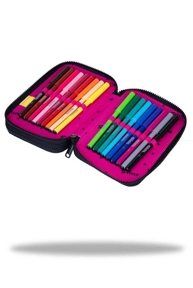CoolPack Jumper 2 в златната Stitch серия е създаден за деца, които обичат организацията, красивите цветове и всичко забавно в училище. С две отделения и еластични разделители, този твърд несесер помага дори на най-малките ученици да подреждат принадлежностите си лесно и удобно.