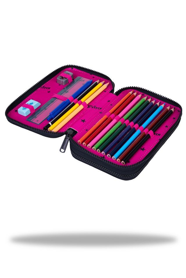 Пълен с качествени продукти от Colorino и Patio – марки, известни с ярките си цветове и дълготрайна издръжливост – този несесер осигурява всичко необходимо за успешен учебен ден.