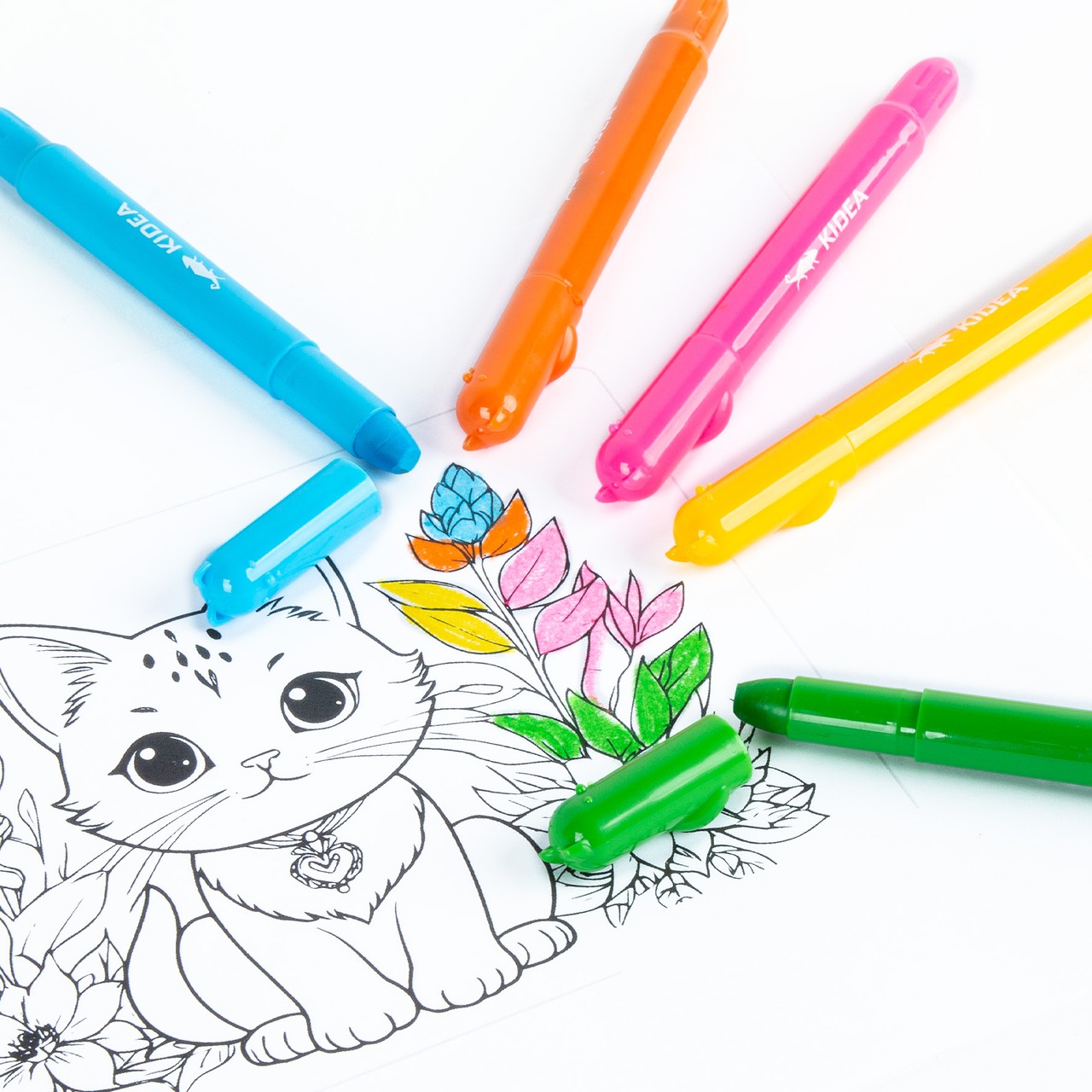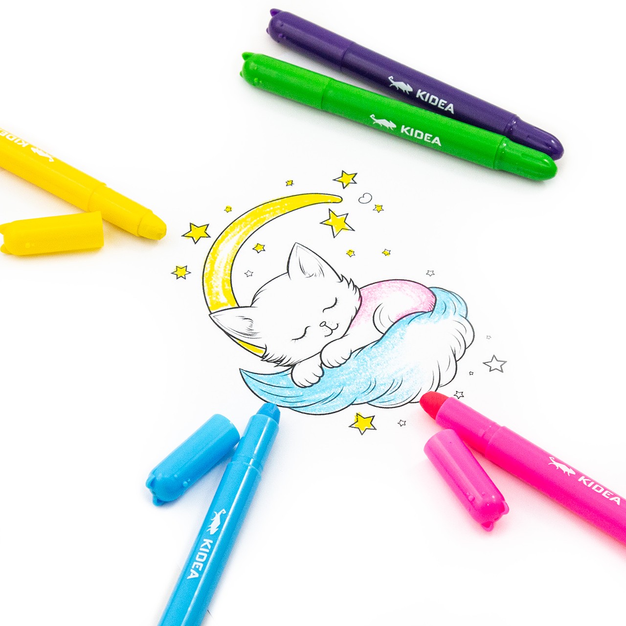 Направете първите стъпки в рисуването още по-приятни с KIDEA гел пастели „Котки“. Сладките котешки фигурки на върха превръщат всеки момент в усмивка, а меката гел формула осигурява ярки и плътни цветове.