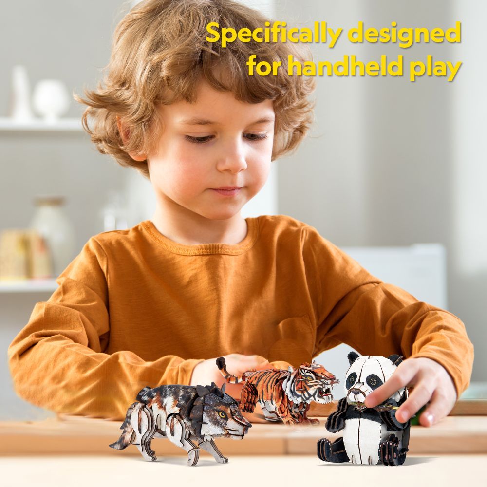 След сглобяване пъзелът има подвижни елементи – ръцете на пандата се вдигат, сякаш се храни с бамбук, добавяйки динамика и реализъм към модела.