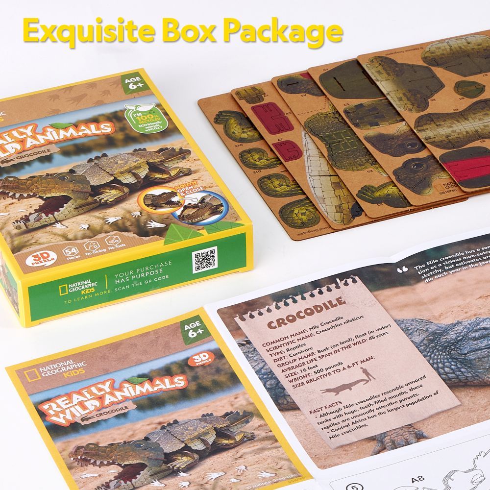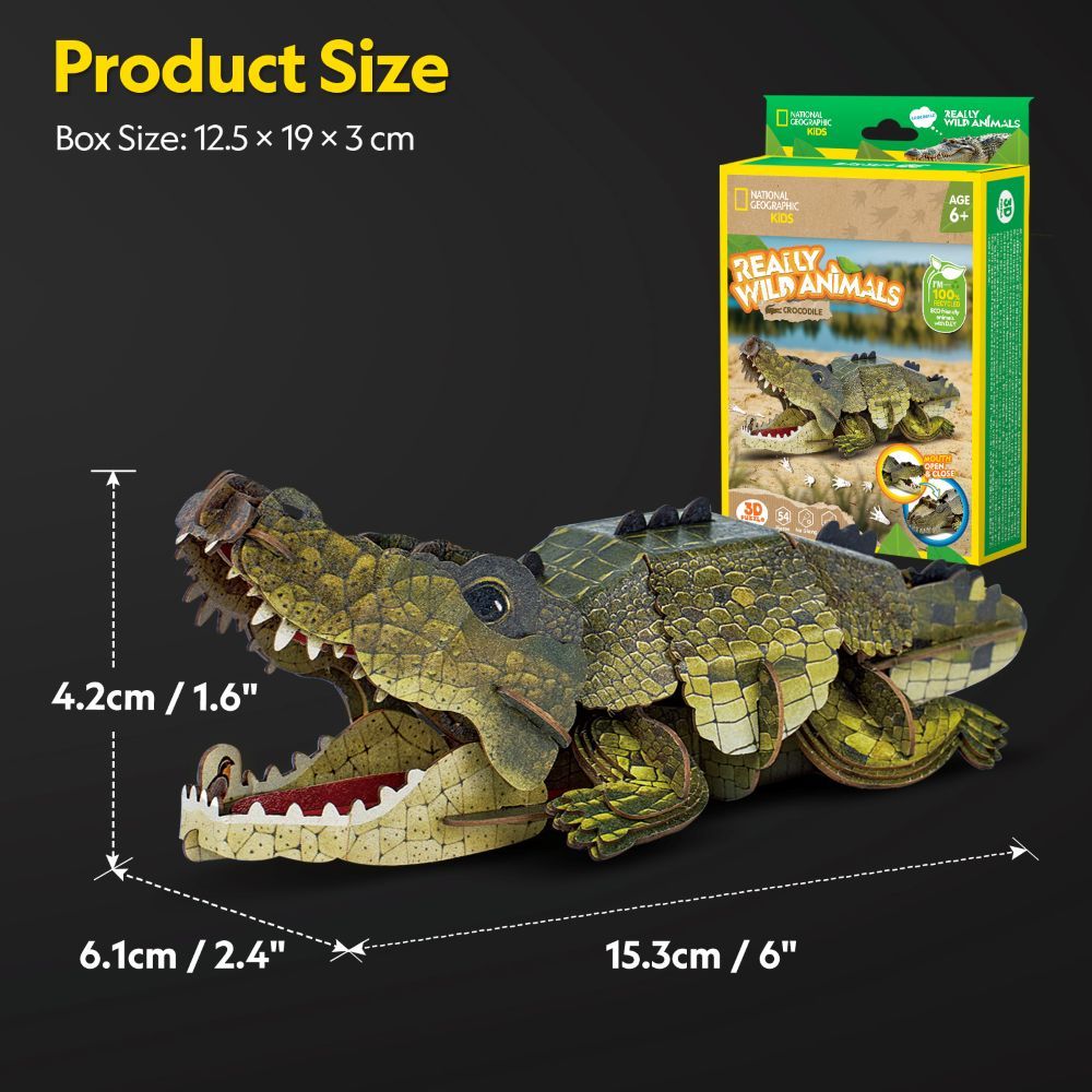 Преживей силата на дивата природа с 3D пъзела CubicFun Крокодил, част от колекцията Really Wild Animals, лицензирана от National Geographic. Моделът пресъздава крокодила в реалистична 3D форма.