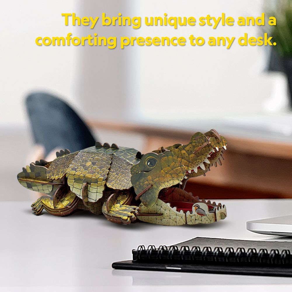 След сглобяване пъзелът има подвижни елементи – устата на крокодила се отваря и затваря, сякаш е готов за действие, добавяйки динамика и реализъм към модела.