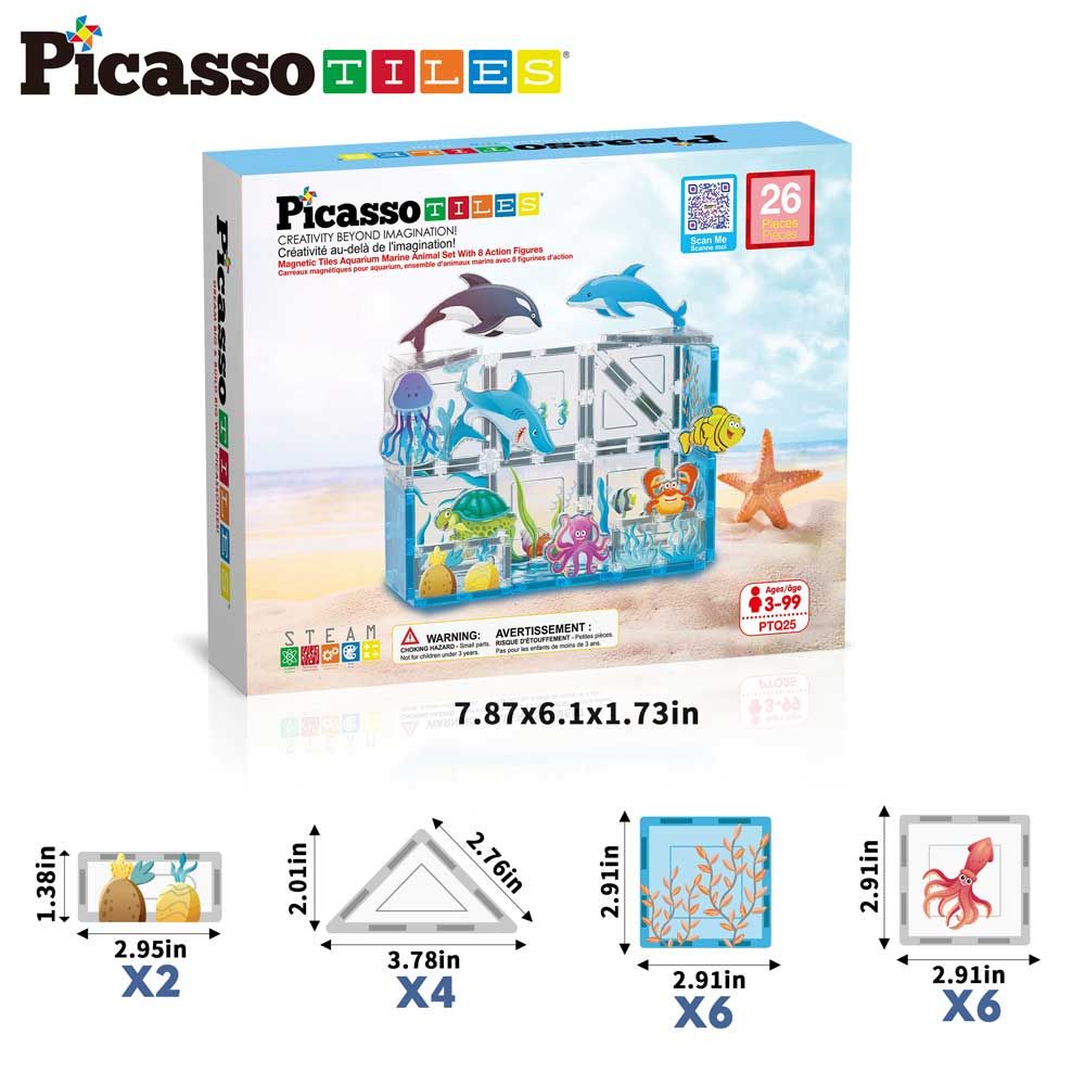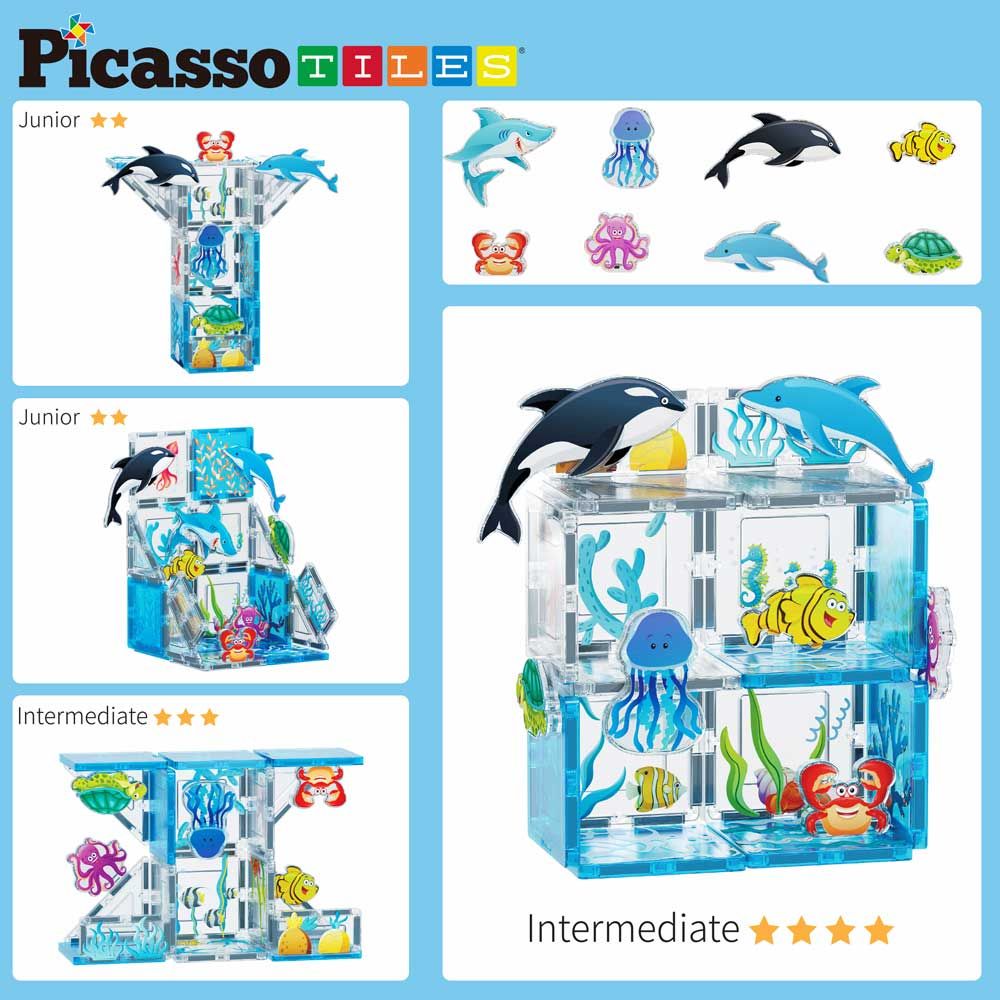 Открий чудесата на океана с тематичния комплект PicassoTiles Аквариум! Потопи се в магическия подводен свят, пълен с цветни морски обитатели и неограничени възможности за игра. Комплектът стимулира въображението, креативността и ранното STEM обучение чрез увлекателни експерименти и игра.