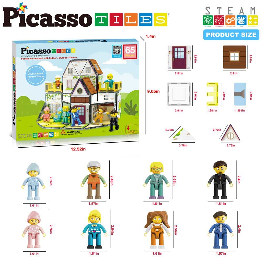 Picasso STEAM Магнитен конструктор – Семейна къща с двустранни плочки, 65 части