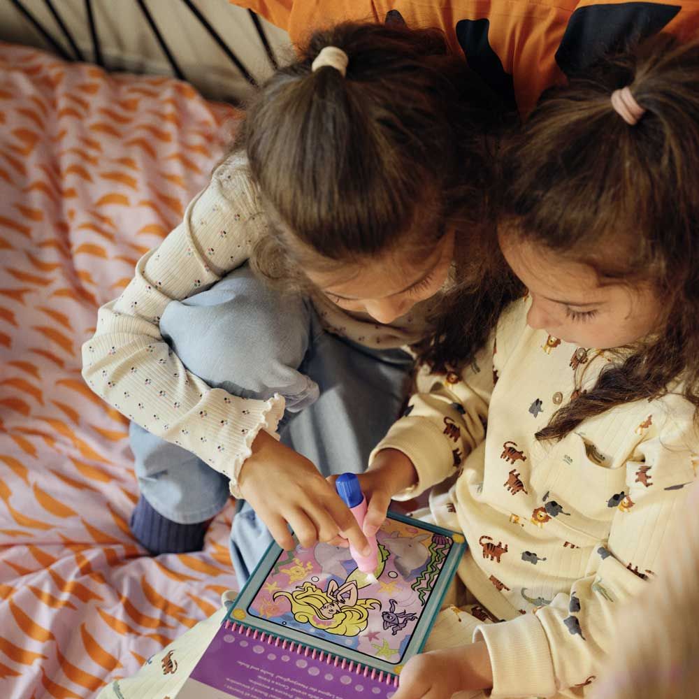 Тази интерактивна водна книжка предлага магия при всяко докосване: напълни писалката с вода, плъзни върху страницата и наблюдавай как се появяват ярки цветове и скрити детайли.