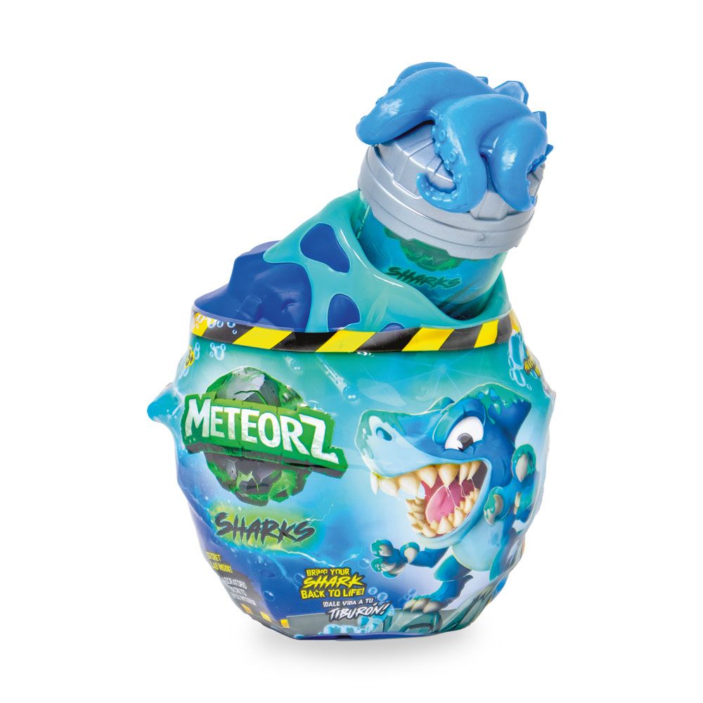 Малките изследователи могат да счупят метеорното яйце и да открият скрита дива акула-играчка. Вътре ги очаква цветен, лепкав и супер разтеглив слайм, който може да се стиска, мачка и изследва – истинско тактилно забавление. Събирай различни мини фигурки акули и превърни играта в океанска колекция, която развива въображението и фината моторика.