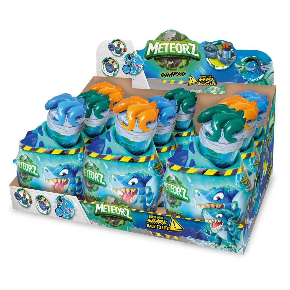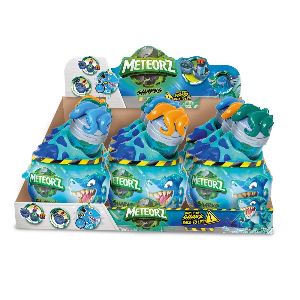 Малките изследователи могат да счупят метеорното яйце и да открият скрита дива акула-играчка. Вътре ги очаква цветен, лепкав и супер разтеглив слайм, който може да се стиска, мачка и изследва – истинско тактилно забавление. Събирай различни мини фигурки акули и превърни играта в океанска колекция, която развива въображението и фината моторика.