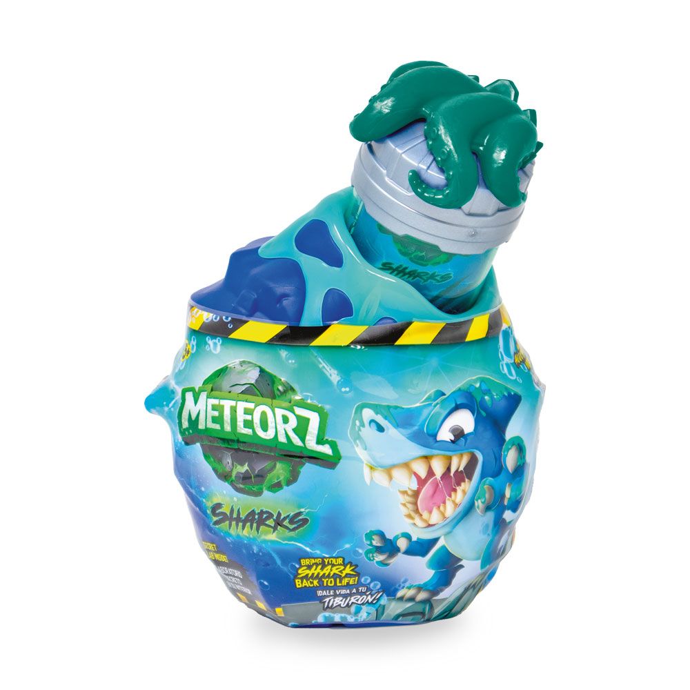Малките изследователи могат да счупят метеорното яйце и да открият скрита дива акула-играчка. Вътре ги очаква цветен, лепкав и супер разтеглив слайм, който може да се стиска, мачка и изследва – истинско тактилно забавление. Събирай различни мини фигурки акули и превърни играта в океанска колекция, която развива въображението и фината моторика.