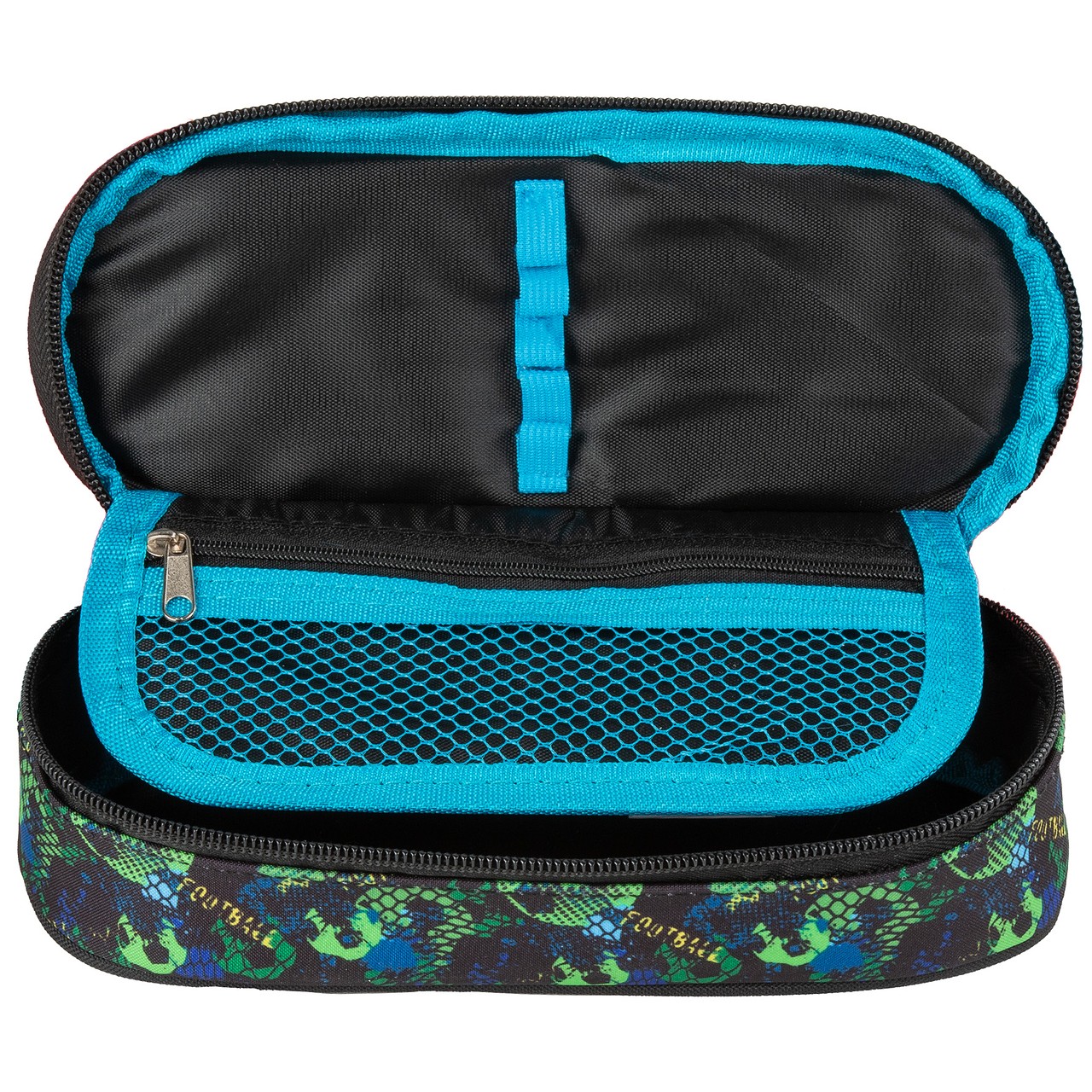 Овален несесер с едно отделение, изцяло подплатен и удобен за съхранение на ученически принадлежности.