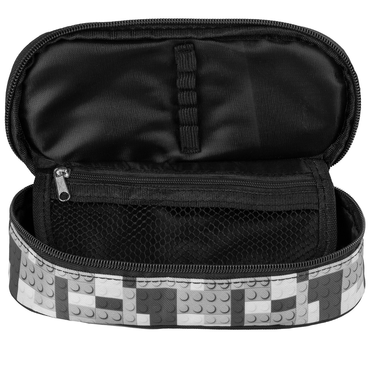 Овален несесер с едно отделение, изцяло подплатен и удобен за съхранение на ученически принадлежности.