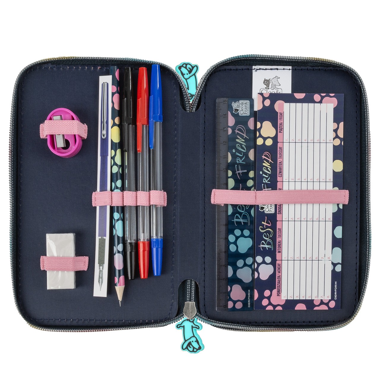 Несесерът с 3 ципа позволява лесно подреждане и бърз достъп до всички пособия, което го прави отличен избор за училище и ежедневна употреба.