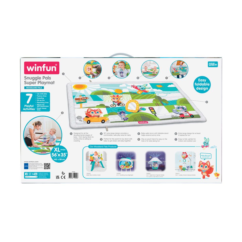 Бебешкият игрален килим Snuggle Pals от WinFun е създаден, за да осигури безопасна, удобна и стимулираща среда за развитие на вашето бебе. С изключително голям размер и разнообразие от активности, той е идеален за игра още от първите месеци.