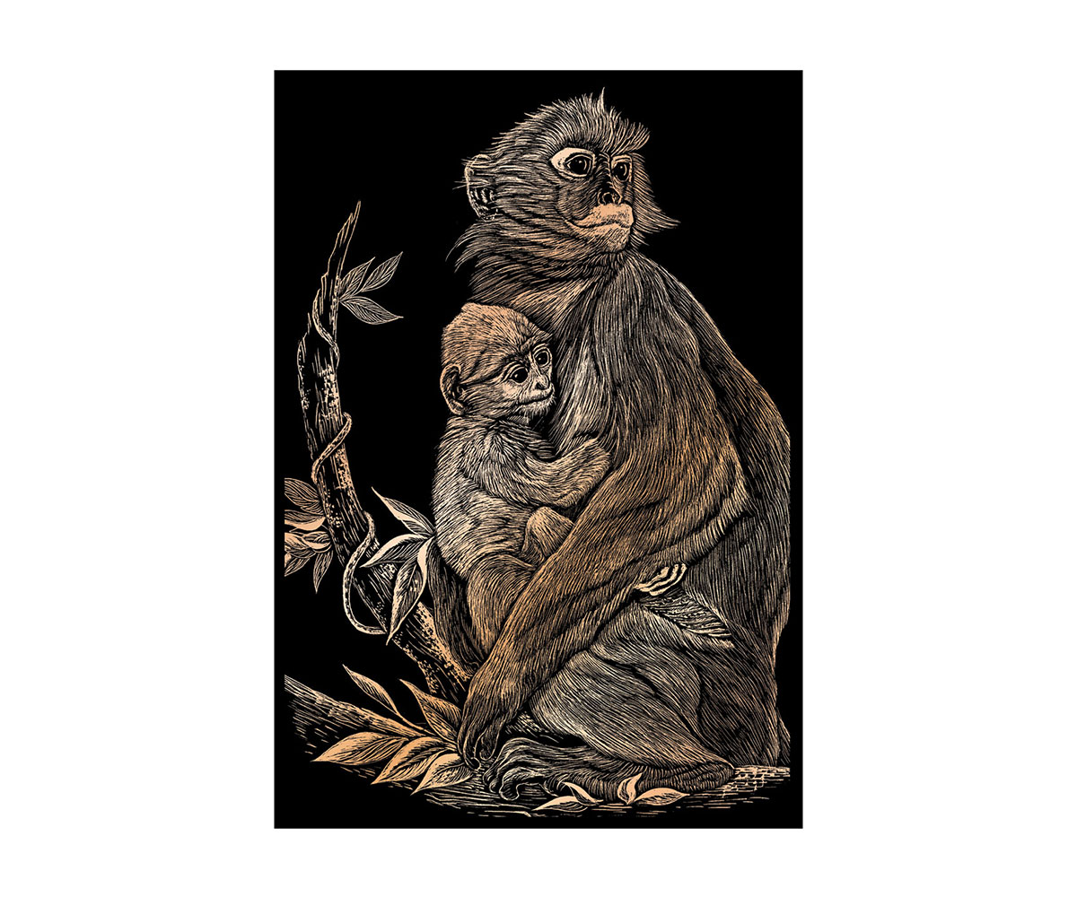 Комплект за гравиране на медна основа Royal, маймунки